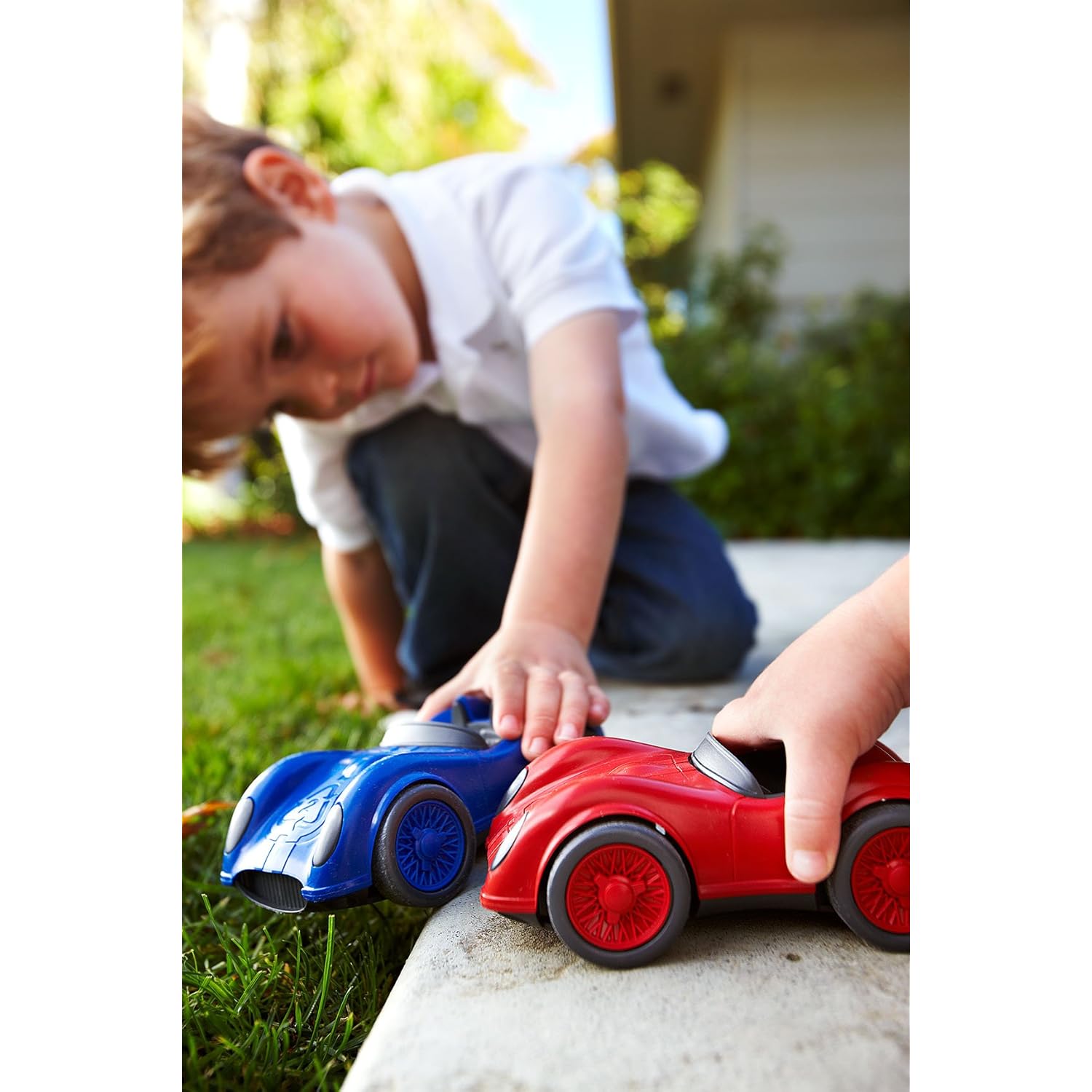 This truck set is for a grandchild but my first reaction when seeing it today, was "Wow, we never had this neat a toy truck when I was a kid". And the racing car is bright and durable and attractive also...The recycled aspect is nice, but I really think this toy's strong suit is the design, color, looks, and size of the two vehicles. Their design and "build" should allow most children (not just boys) to enjoy these toys, and should allow their imaginations to soar. This company (Green Toys) has certainly found a nice niche to fill, in the toy world.
